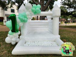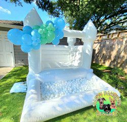 The price includes the bounce house and the ball pit with pink balls so you can get fun, unforgettable pictures of your kids. Want a balloon garland to go along with this bounce house? Add it to your cart from the accessories below! Looking for something bigger that will be hours of fun for your kid's party? Check out our selection of bounce houses!