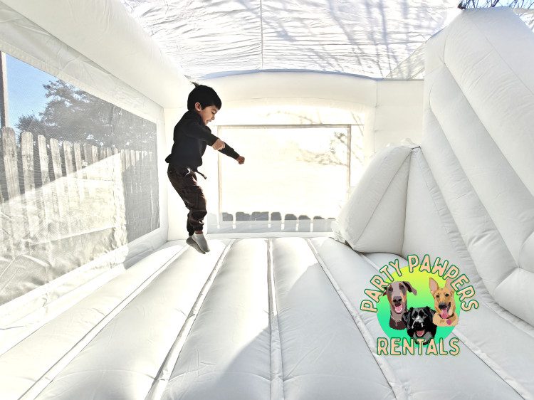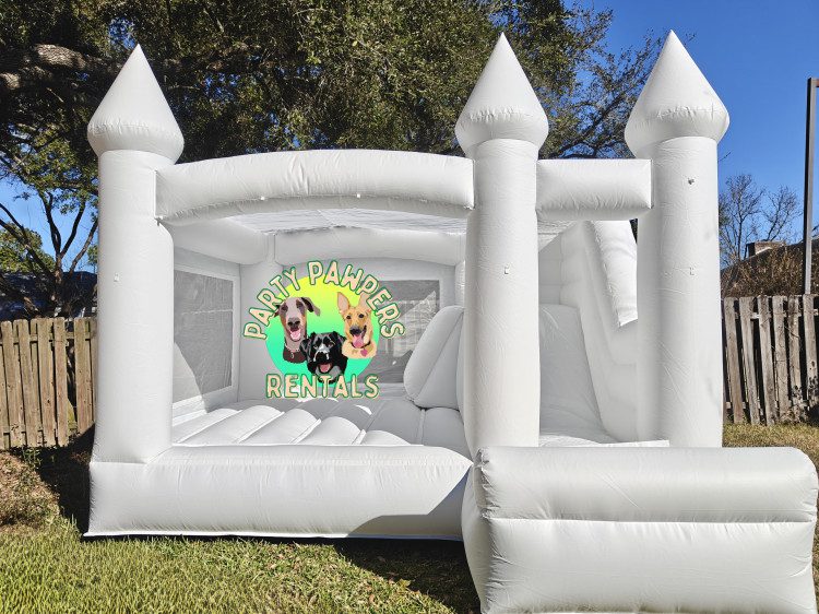 Bring royal fun to your event with The White Palace Bounce and Slide. This elegant all-white castle features a spacious bounce area and an attached slide, making it perfect for birthdays, weddings, baby showers, church events, and more. Its neutral design fits any theme and photographs beautifully, making it a favorite for both kids and adults.